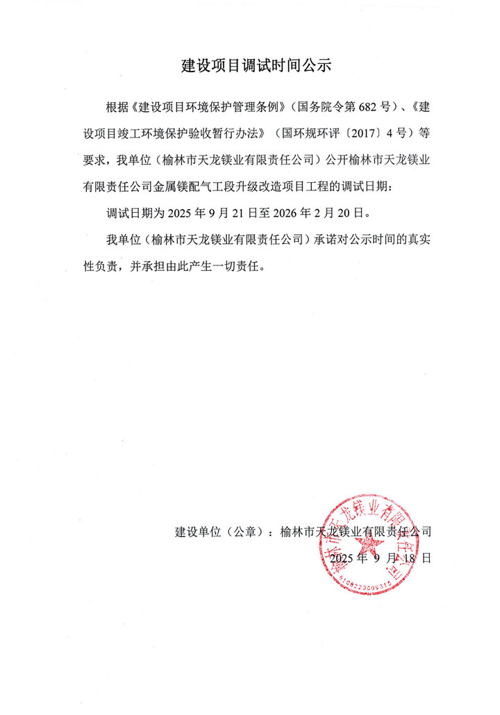 天龍鎂業(yè)金屬鎂2.25萬噸、蘭炭50萬噸驗收公示